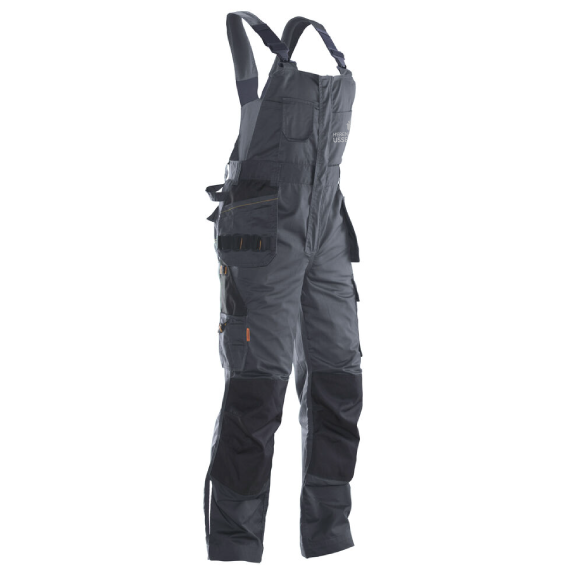 Praktische overall van het merk Jobman gemaakt van polyester/katoen. De broek is voorzien van diverse zakken zoals, borstzak met klep en klittenbandsluiting, holsterzakken met extra compartimenten met rits, achterzakken met klep en klittenbandsluiting, zak op het been met compartiment en klittenbandsluiting en een duimstokzak met ruimte voor een mes. De overall is verstevigd bij de kniestuk zakken. Maten C42-C64 kunnen gemakkelijk met 5 cm worden verlengd door de omslag in de broekspijp.