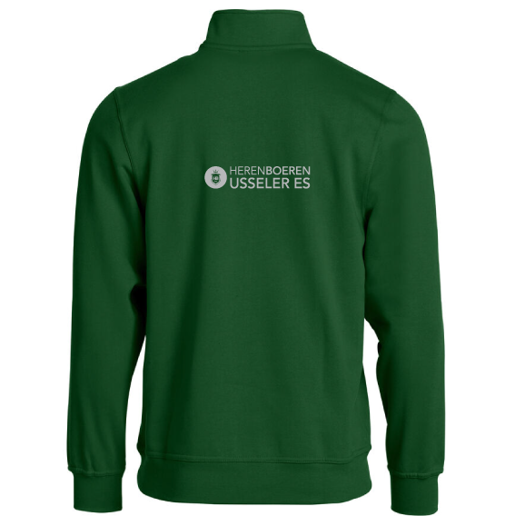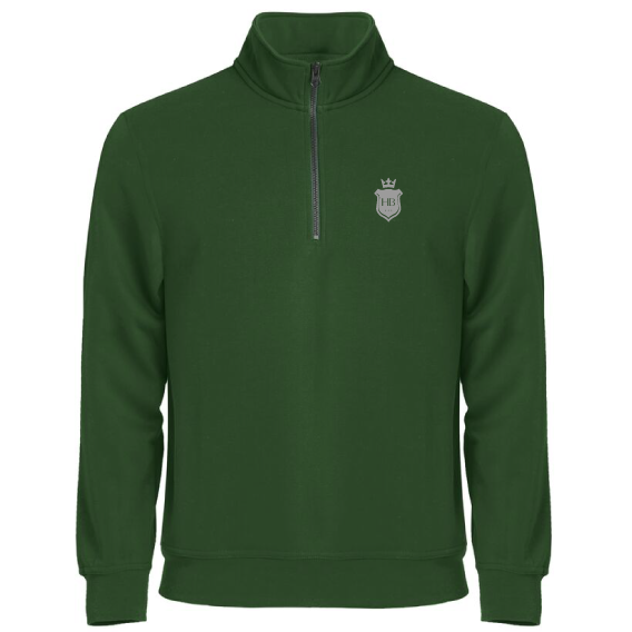 Unisex sweater met opstaande boord en korte rits.